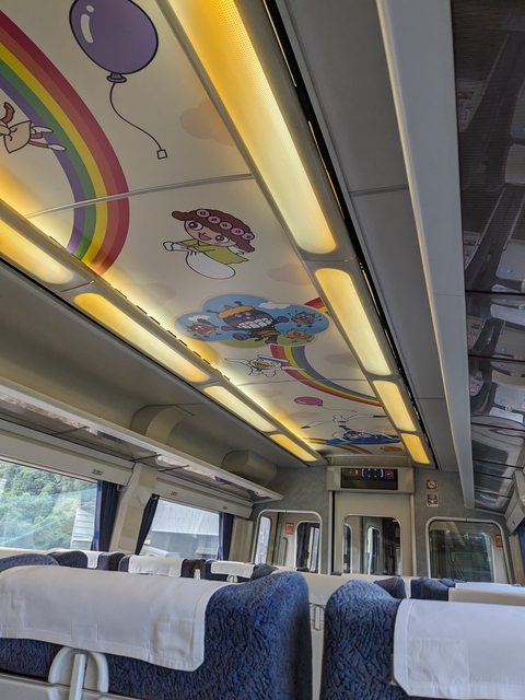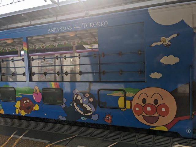 這天就移駕松山,搭予讚線8000系麵包超人列車,沒啥人,瀨戶內海風景百看不厭