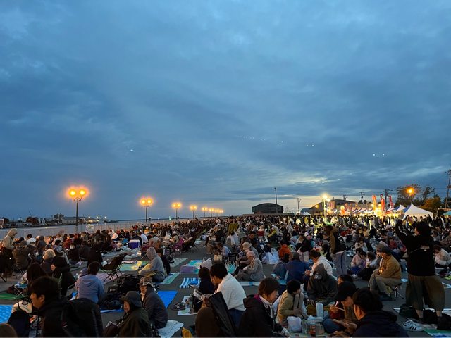 很多人都有準備椅子或地墊,我們則是直接席地而坐。