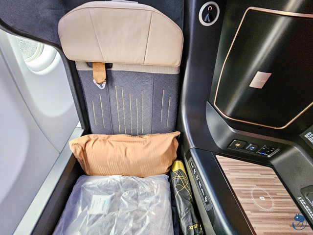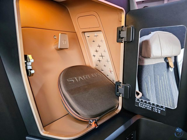 座位旁是唯一的置物空間與降噪耳機,還有化妝鏡。