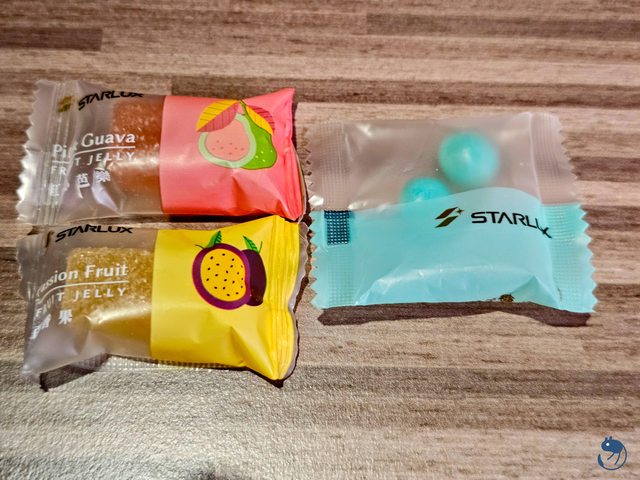 降落前的小糖果,紅心芭樂與百香果軟糖,還有薄荷糖。