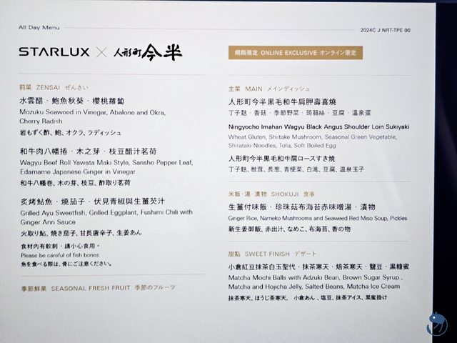 日餐還有一個東京出發航線且要網路預約才有的人形町今半聯名的和牛壽喜燒。