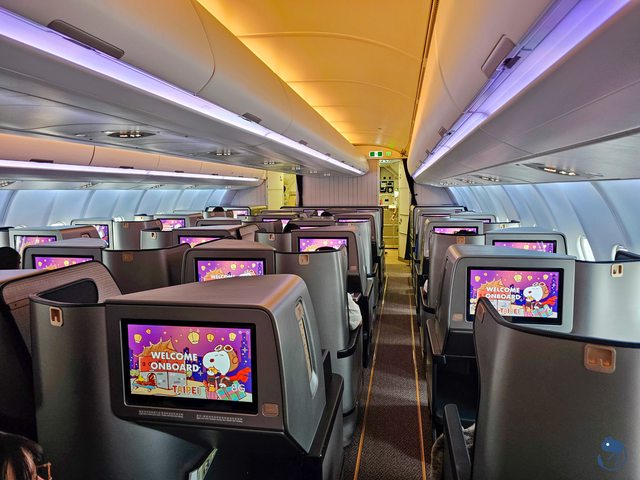 今天商務艙接近九成滿,生意真的很不錯,難怪一天都飛到三班了。