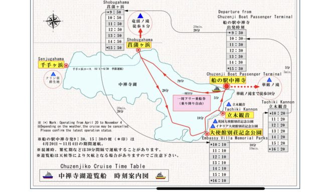 14:20-14:25 船:立木觀音碼頭-28中禪寺溫泉碼頭