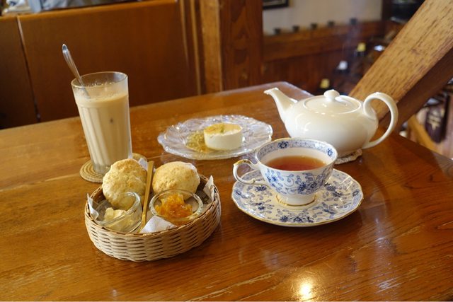 (笑)司康很扎實,奶油和柑橘抹醬都給推,紅茶很順口沒有茶包回沖。