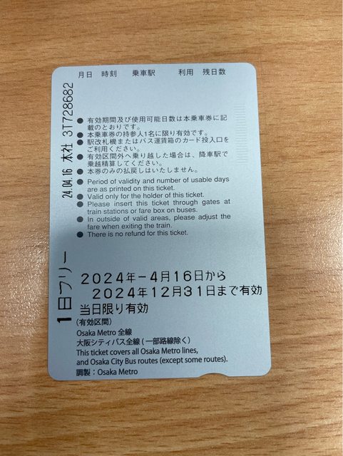 標題[讓售] 大阪巴士地鐵一日乘車券