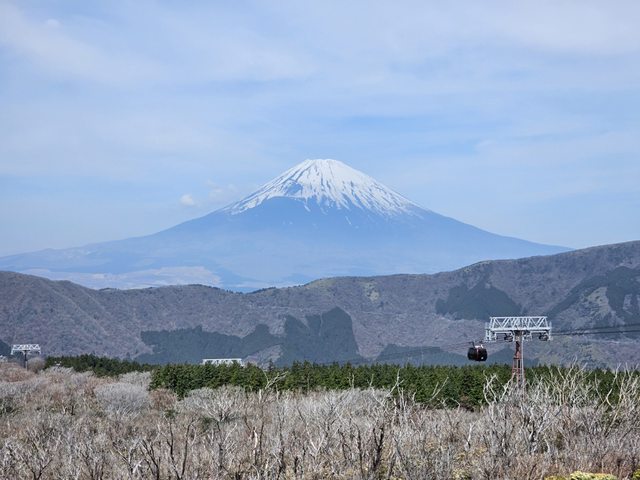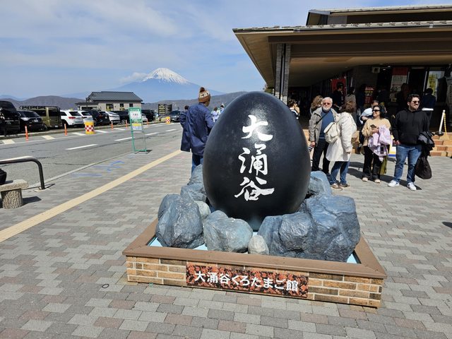富士山,同時因為有纜車站的關係,也可以拍到纜車從富士山前面過去。大湧谷的特產是