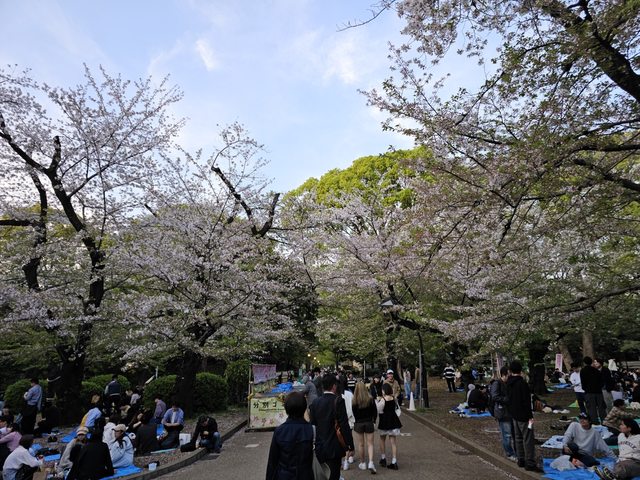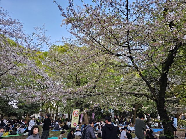 開始長出來,不過還是很多日本人不減興致,坐在櫻花樹下野餐,可見賞櫻對日本人真的