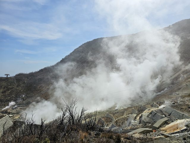 大湧谷基本上跟日本各地的地獄谷或台灣的小油坑一樣,都是會噴出含硫磺氣體的地方,