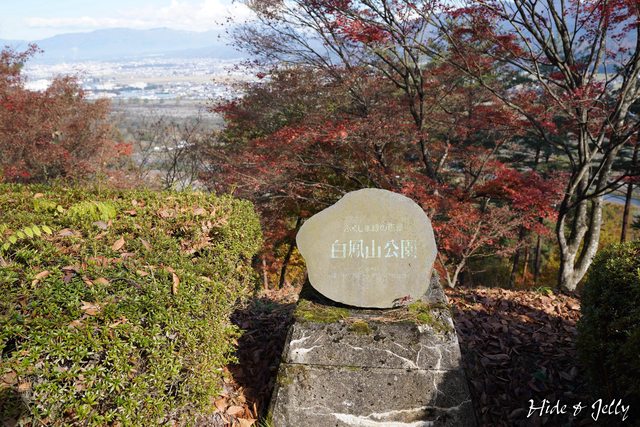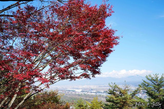 既然是楓葉季來到的山城,當然還是有幾棵楓紅可以欣賞,搭配前方的会津盆地與遠方的