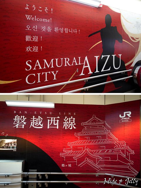 通往月台的牆上,還有紅色意象的会津觀光宣傳,不知道是不是因為会津若松城是紅色屋