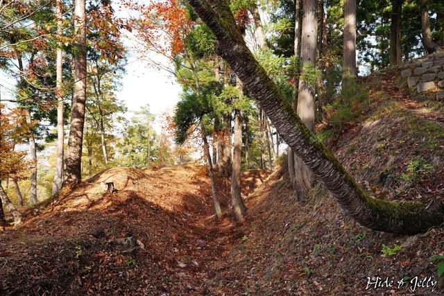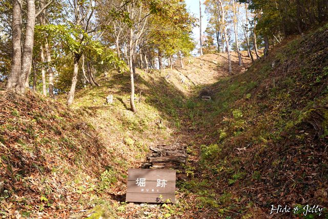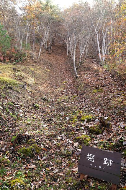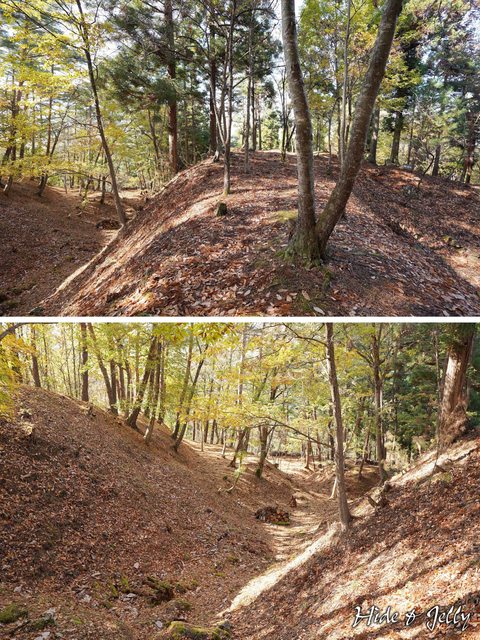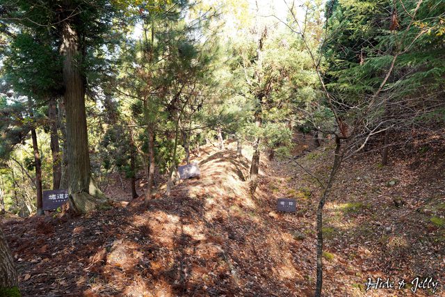 距離入口沒多久,可以看到一條長長的豎堀,這是一曲輪相當有特徵的一處遺跡,下方還