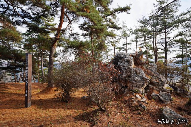 一曲輪也是山頂部的平台區,面積明顯比二の曲輪小不少,立有一根「囯指定史跡 向羽