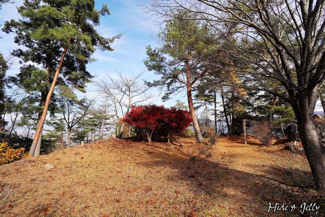 一曲輪由西往東的全景,中央還有幾顆小楓葉,相當火紅。