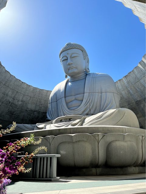 在高13.5公尺、重1,500噸的石像大佛面前靜靜坐著、感受平靜又莊嚴的氛圍。