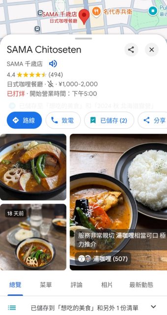 查詢到露營場的路線跟沿路景點餐廳,先安排了一間知名湯咖哩店: