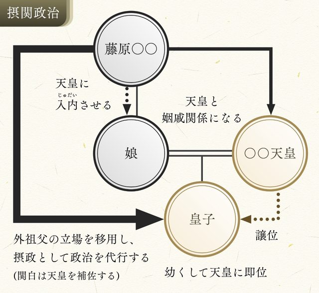 -攝關政治:所謂攝關政治,專指在平安時代,藤原北家將家中女兒嫁給天皇、生下皇子