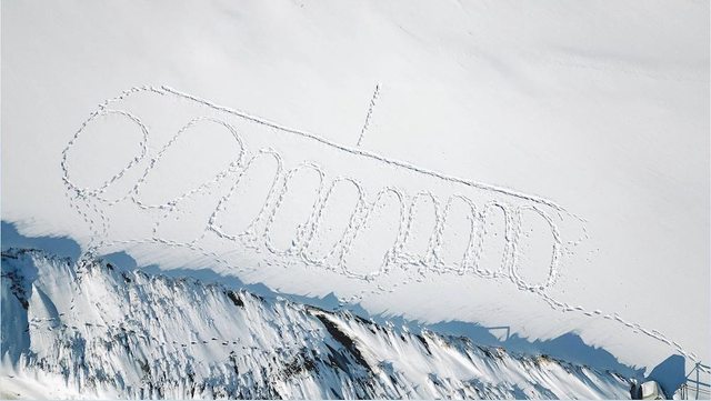 海風過強空拍機無法飛太高,每次起飛都擔心會墜機,捏了好幾把冷汗。為了在雪地上寫