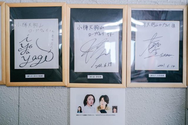 TENGUU CAFE後方置有日劇《First Love初戀》的海報和佐藤健的親筆簽名。實地走訪後
