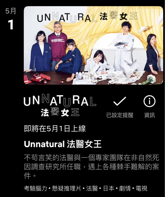 標題Re: [情報] NETFLIX 5月11日上架—Unnatural法醫女王
