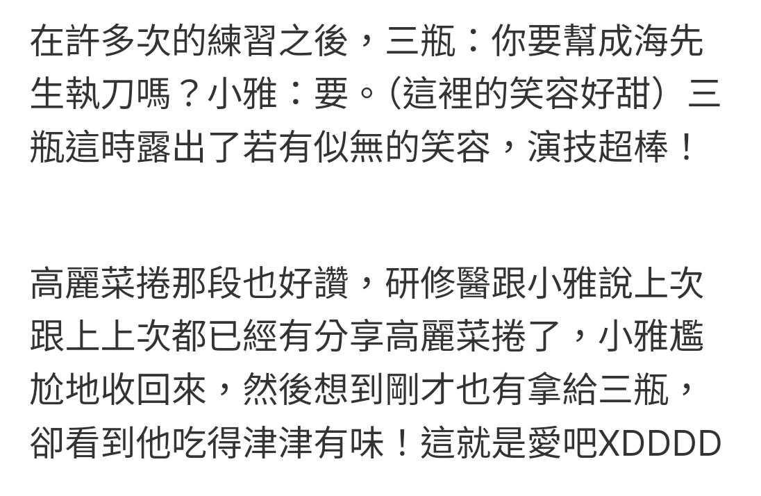 推 dwdt: 好喜歡手術結尾小雅長長的哭戲,好安靜又感人!!真的感受 05/14 23:54