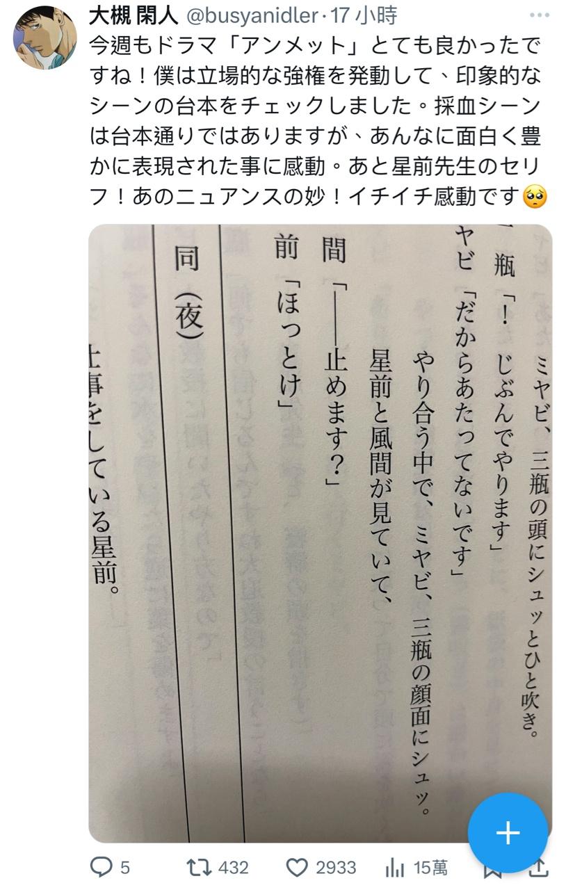 → pichai: 演員真的很強。從第一集我就一直覺得三瓶醫生很壓抑,原 05/21 13:55
