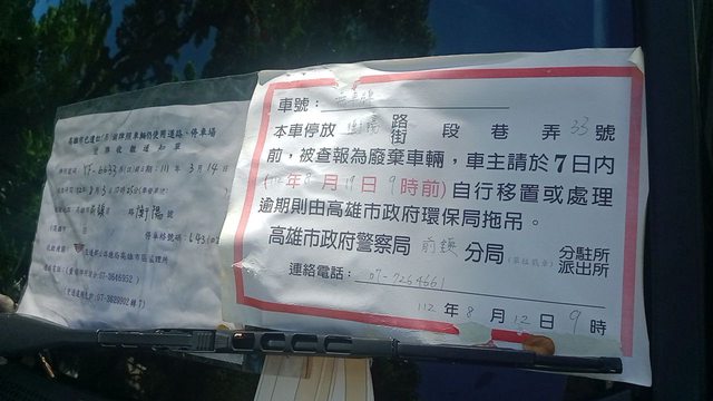 → yuansaint : 環保局貼單後回覆一周會再前往 沒離開會拖吊 08/28 22:19