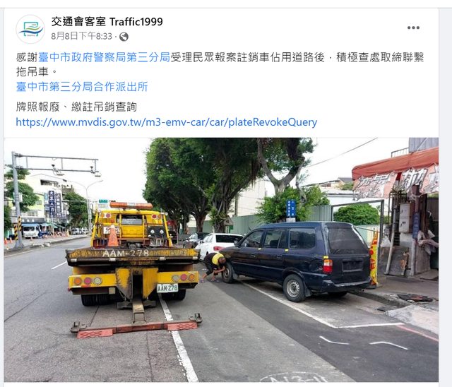 → annzheng81 : 幾天都沒用,用通報拖吊網站也只是打回轄區,繼續 08/28 21:32