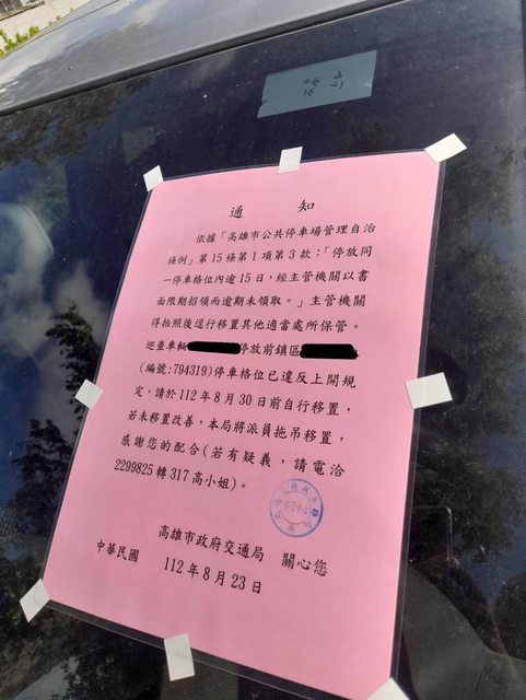 → wingthink : 市對無牌佔用停車位的處理方式是有要修法一個月內移 08/29 01:58