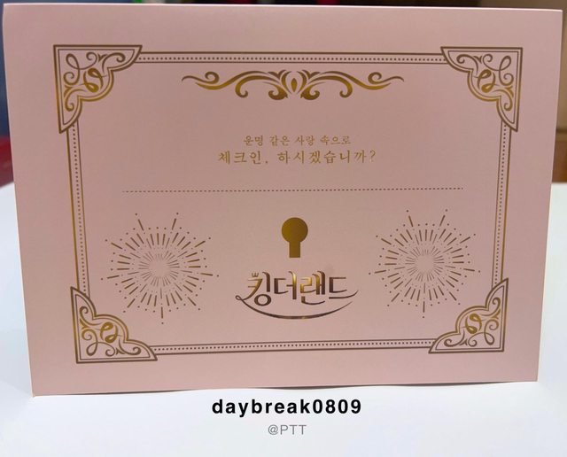 小卡背面的話則是用飯店房卡的設計,雖然覺得很有創意但如果是兩個人的簽名就好了(