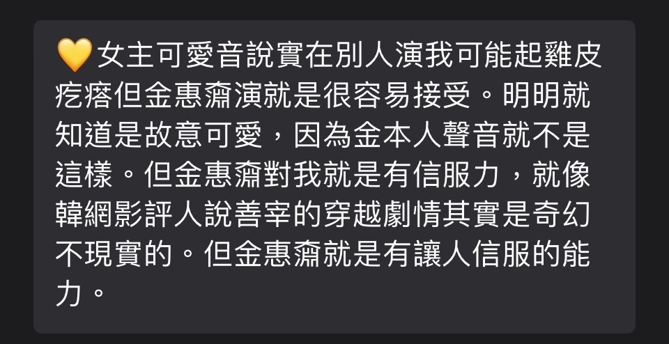 → concerto28: 的角色演技有到位,但是金的演技明顯好很多,細膩度 06/03 01:10