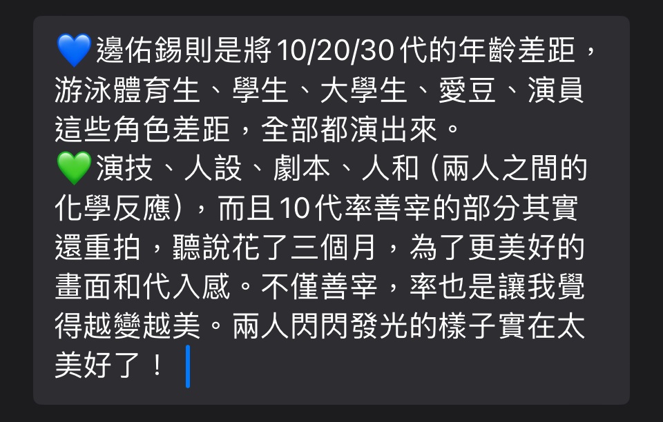 → winnie816061: 這部戲真的會留在心裡很久~滿滿的幸福05/30 00:22