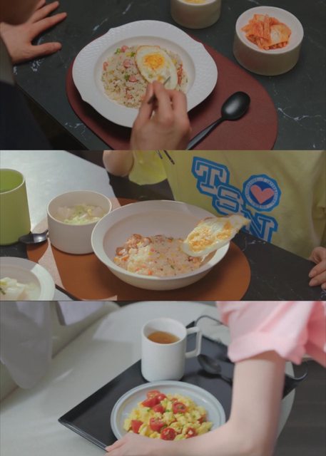 中間兩個是EP.11,原本早餐是雞蛋捲+餃子湯,弘基禱告時吃完狗糧,出現