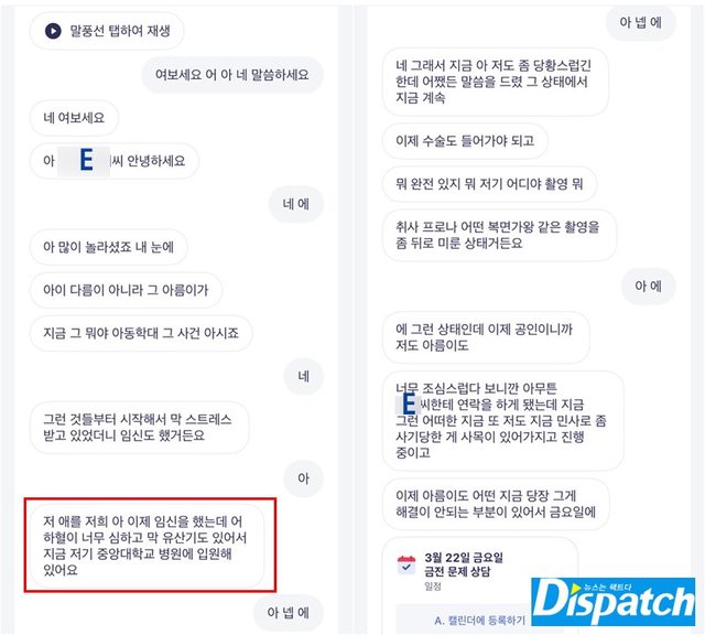 Dispatch在3月25日打了電話給雅凜。 對於徐東勛的主張,有需要確認的部分。
