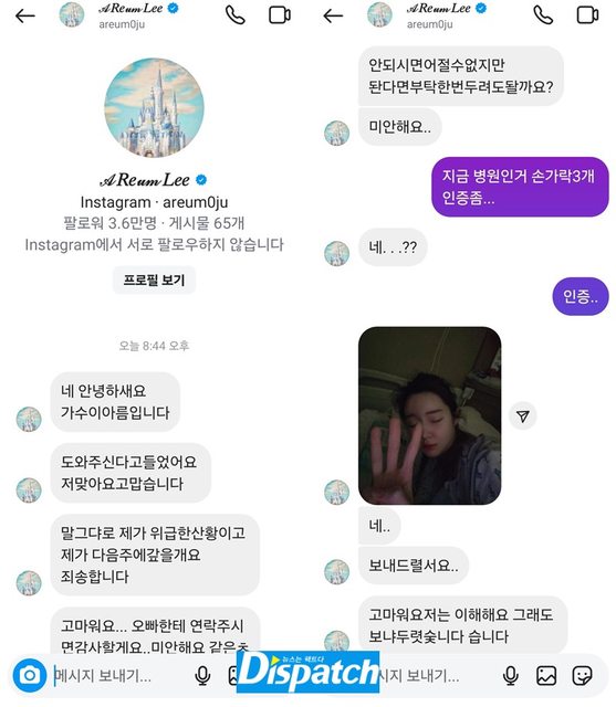 指說「雅凜住進了高麗大學安山醫院」並要求協助支付醫療費,