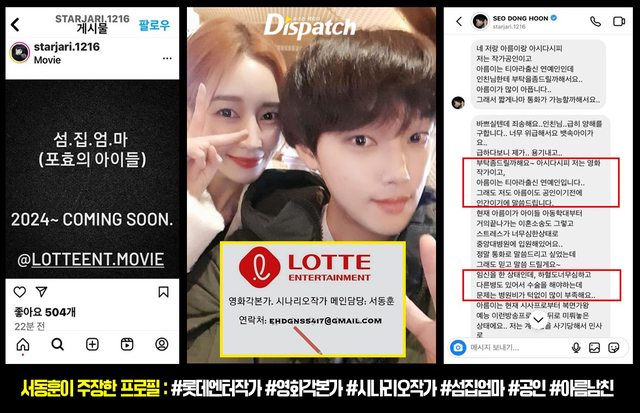 「連續劇作家」等虛假經歷,他還上傳了偽造的樂天娛樂名片與《島上媽媽》劇照。