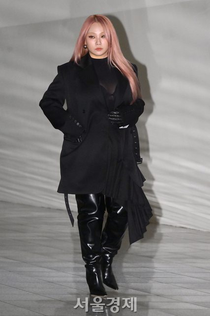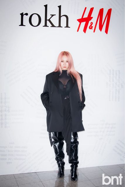 4月12日傍晚在韓國首爾東大門設計廣場(DDP)舉行的H&M x Rokh聯名發布會,CL以粉髮造