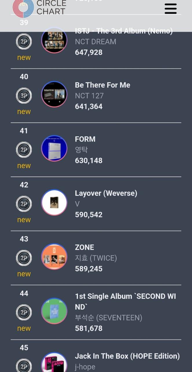 娜璉則是廣受好評 最高位在Melon日榜第2名 這樣看起來志效專輯銷量很奇怪吧 還是粉絲都只買專輯而不聽她的歌呢?? -- 今晚你選那一個姿勢?? ○ "○ ○" ○" (|\ (|\ )) )) ○╭○rz ○rz ○rz-st○ /`○rz /`○r27\" ○r27\"  ̄′ ○=^ -- ※ 發信站: 批踢踢實業坊(ptt-site.org.tw), 來自: 218.173.32.68 (臺灣) ※ 文章網址: https://ptt-site.org.tw/KoreaStar/M.1714454045.A.5A9