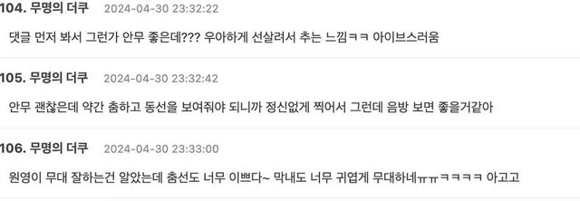 → a2615916: 有好感。ive 感覺舞台魅力不太行。 42.78.213.249 05/02 13:07