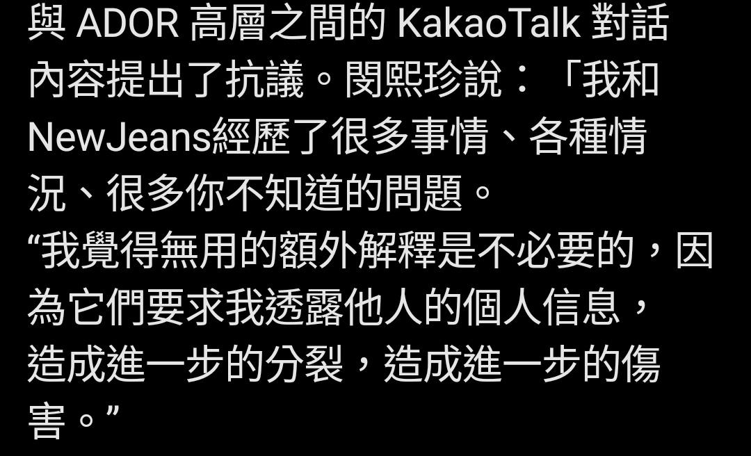 → Miseryz: 我感覺是她解釋說hybe都斷章取義,罵NJ是 1.161.159.188 05/19 15:10