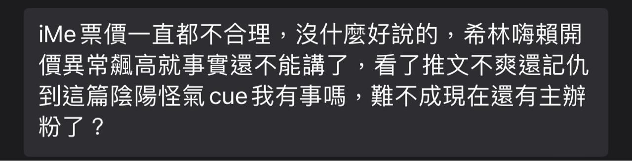 推 Zerobell: 粉絲都在主辦FB罵,大家都知道主辦吃相 39.12.10.224 05/20 19:54