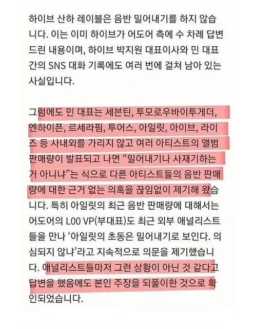 → seba1027: HYBE這邊質疑銷量又沒有看到模擬對話111.254.81.65 05/28 01:08