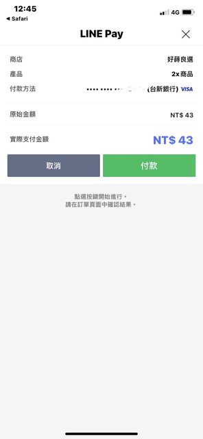 推 linglinyen: 用LINE點數支付扣款,訂單回饋回來的 101.9.64.112 06/24 15:38