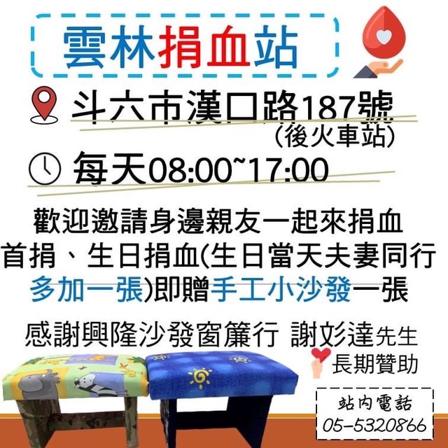 #首次、生日當天捐血送精美小沙發椅/生日當天捐血夫妻同行加贈一張