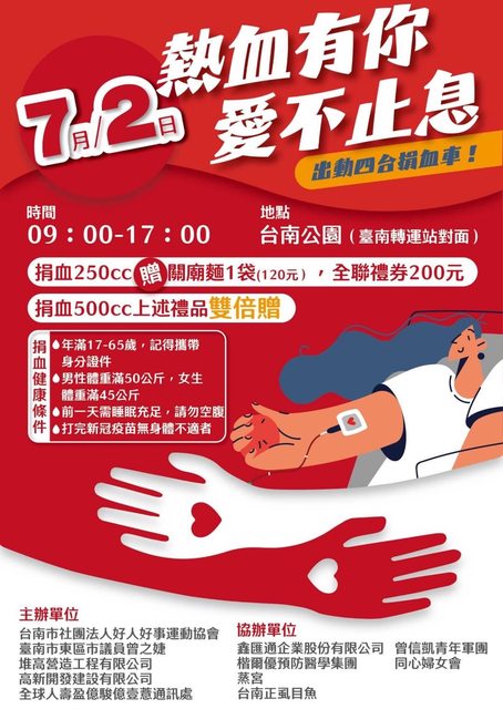 〝〝〝台南捐血中心臉書粉絲團:https://www.facebook.com/tnblood〞〞〞