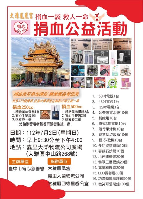 標題[情報] === 七月全台捐血贈品 === (7/1更新)