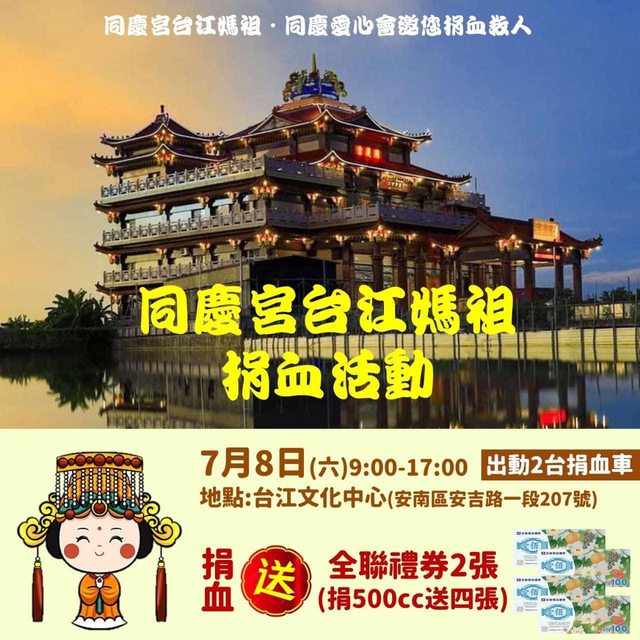 7/8(六):台南台江文化中心 09:00~17:00 送全聯禮券$200/$400