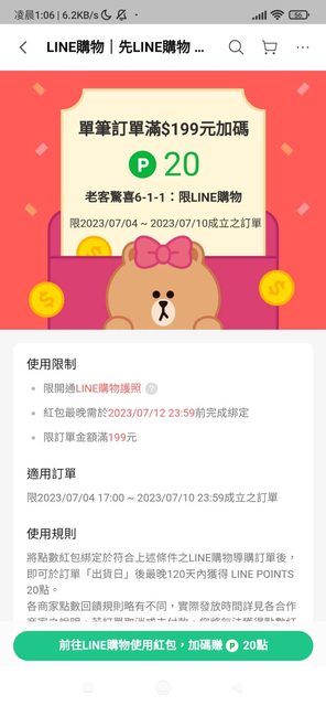 推 marshmallowH: 才20 line購物可以倒了218.164.222.126 07/08 15:04