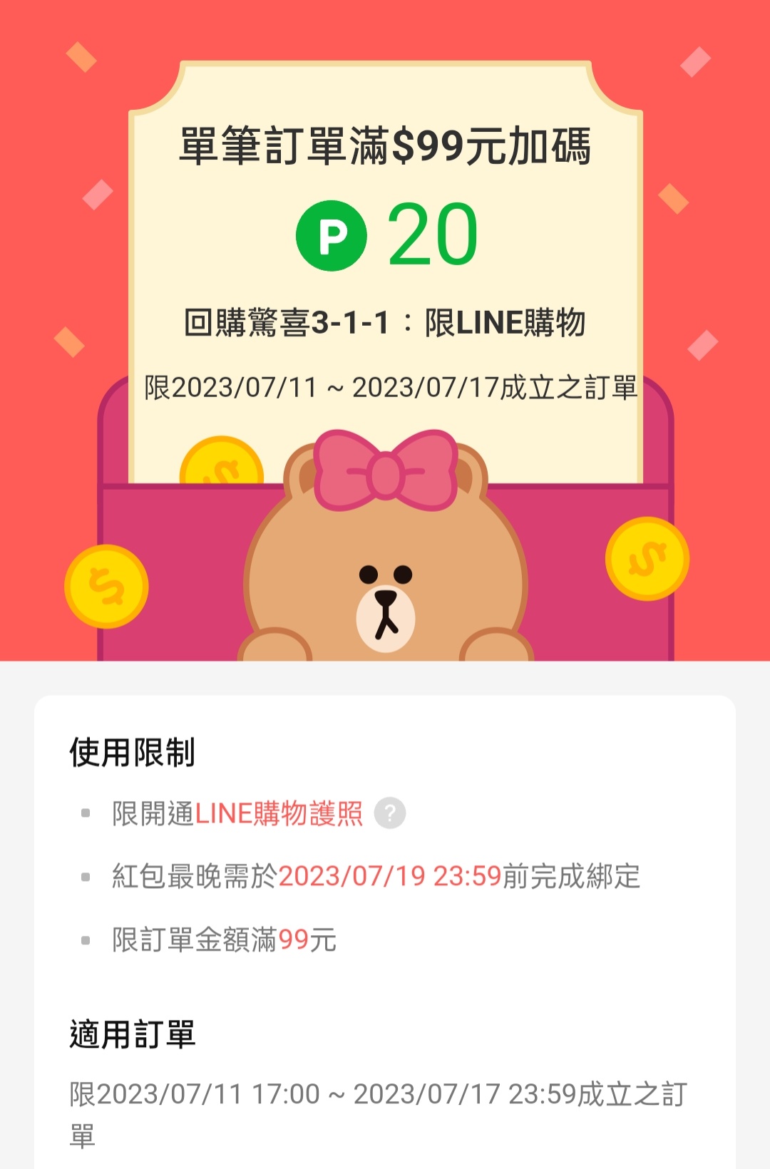 推 TZUYIC: 199-20還沒用,又給了99-20,現在有兩個了 101.136.32.36 07/11 20:38