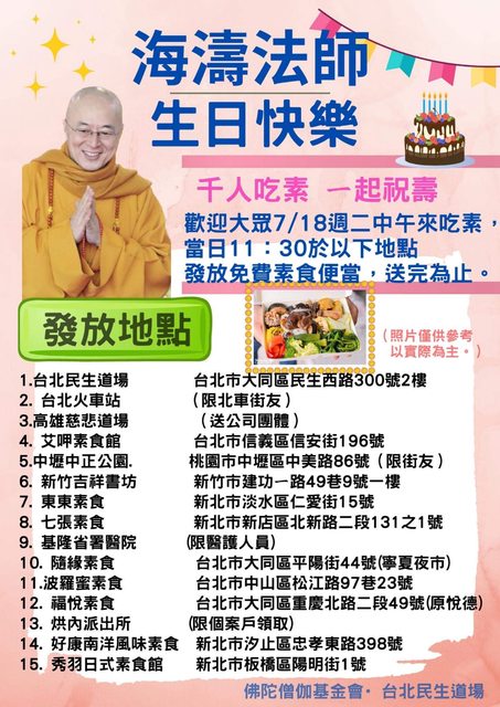 標題[情報] 台北新北新竹高雄7月18免費素食便當