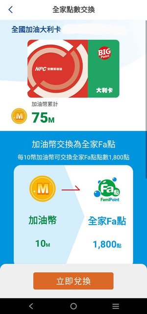→ HsuaChien: 接扣加油費,但才10幣換全家點數也175.181.156.134 08/02 11:15